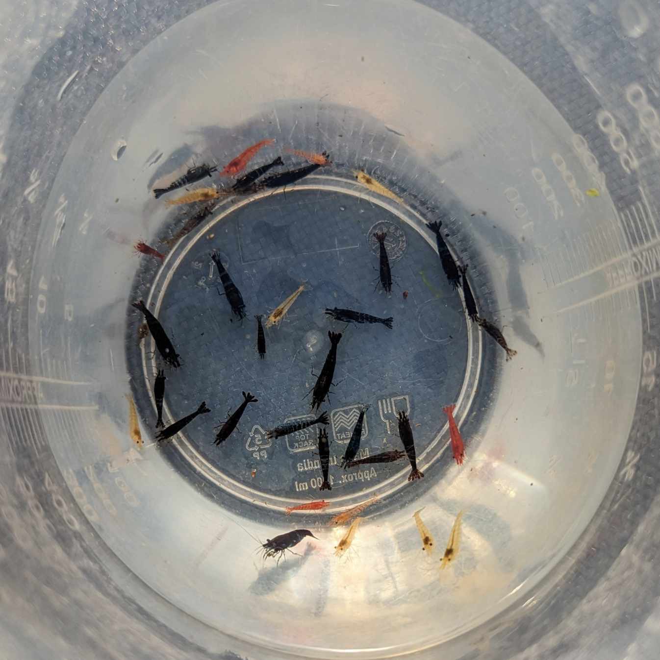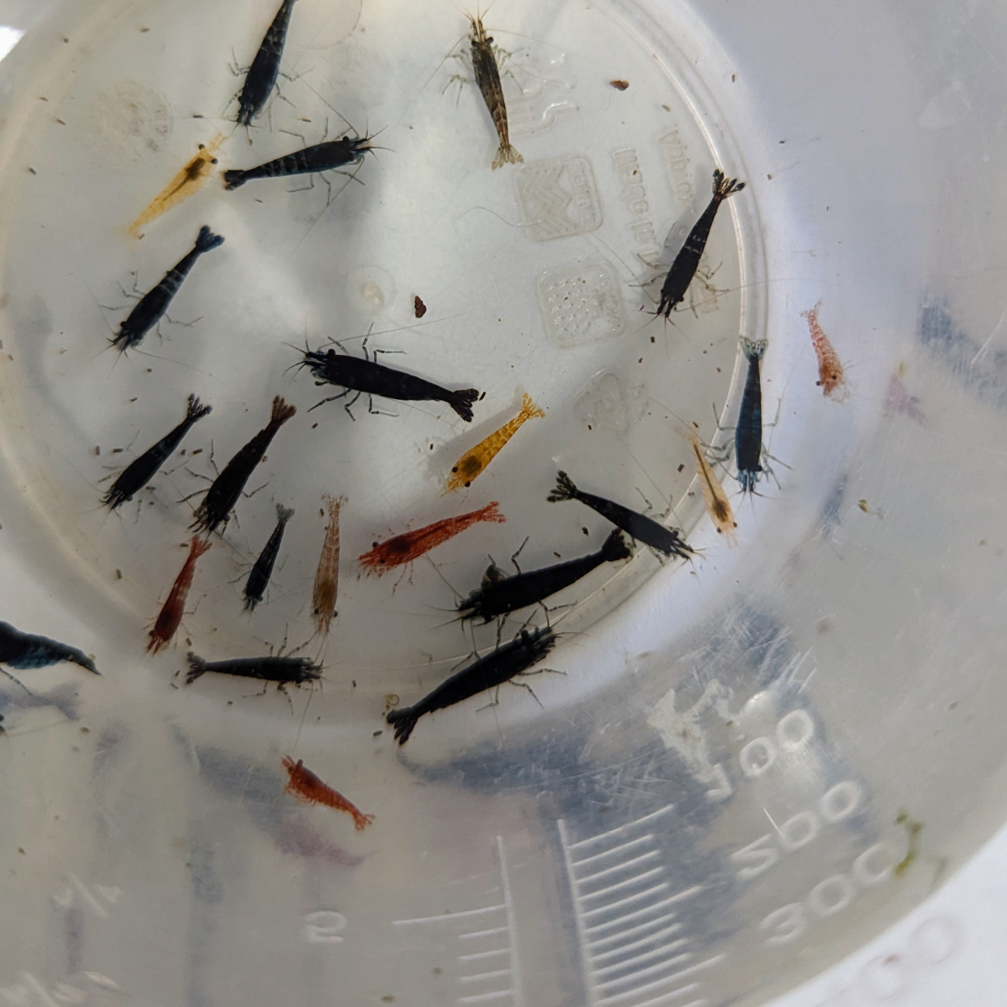 Mixed skittles shrimp Neocaridna Red cherry, orange, yellow, blue, black, chocolate and rili cannot guarantee all colours will be available but a good mix will be sent. Home bred in my personal aquariums very easy to care for very hardy shrimp they have a wide range of acceptable parameters such as a pH range of 6.0-7.6 and a preferred temperature range of 18-28c